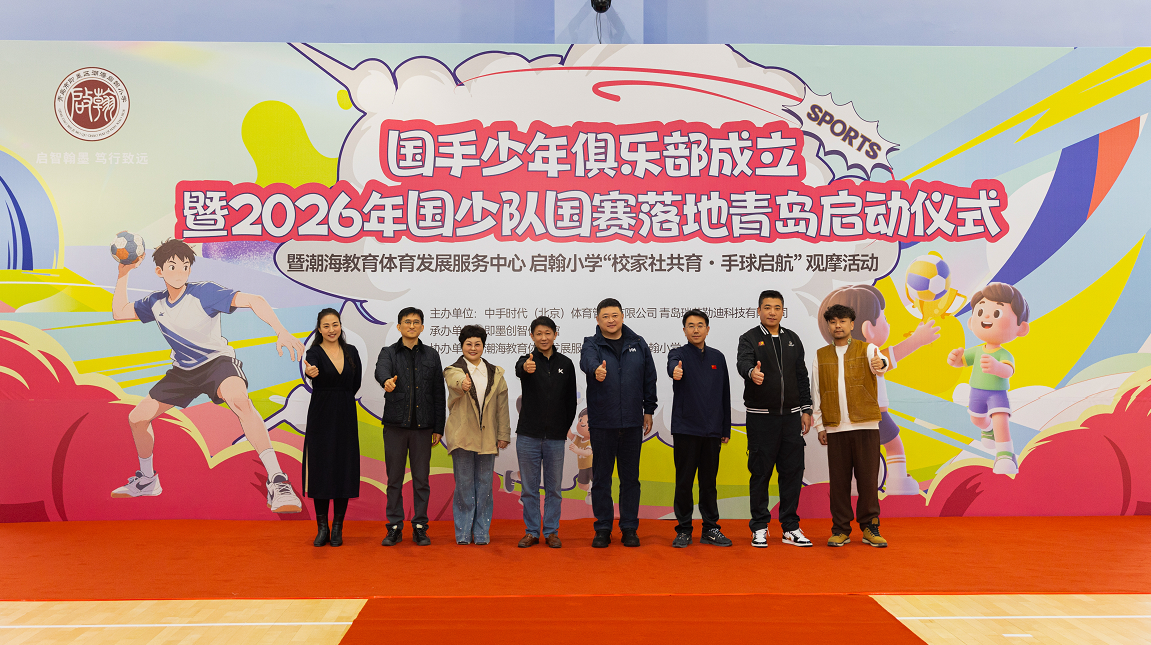 引领青少年手球运动新热潮 ——国手少年俱乐部成立暨2026年全国青少年U系列手球总决赛落地青岛发表时间:2025-11-03 11:34 在这个充满活力的季节,11月1日,国手少年俱乐部成立暨“奔跑吧·少年"2026全国青少年U系列比赛手球总决赛落地青岛启动仪式以及即墨区潮海启翰小学“校家社共育・手球启航”观摩活动在青岛即墨创智体育馆举办,青岛市体育产业发展中心负责人、青岛市体育总会副秘书长李润峰,青岛即墨教育局党组副书记吴科业,九三学社即墨区委员会主任赵星,青岛市篮球橄榄球运动管理中心副主任辛磊,青岛市即墨潮海教育体育发展服务中⼼主任孙燕,青岛市即墨潮海启翰小学校长尹巧丽,中科人工智能创新技术研究院院长纪文峰、国家虚拟现实创新中⼼(⻘岛)副总经理/⻘岛瑞艾勒迪科技有限公司董事⻓王鹏等领导以及数百位家长、师生见证了这一历史性时刻。这既是对青岛手球运动发展成果的肯定,更将搭建起“培训-竞赛-成才”的完整体系,引领青少年手球运动掀起新热潮。